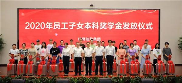 9月8日下午,紅獅集團總部及蘭溪市內子公司共24名員工和子女同聚一堂,參加2020年員工子女本科獎學金發放儀式。