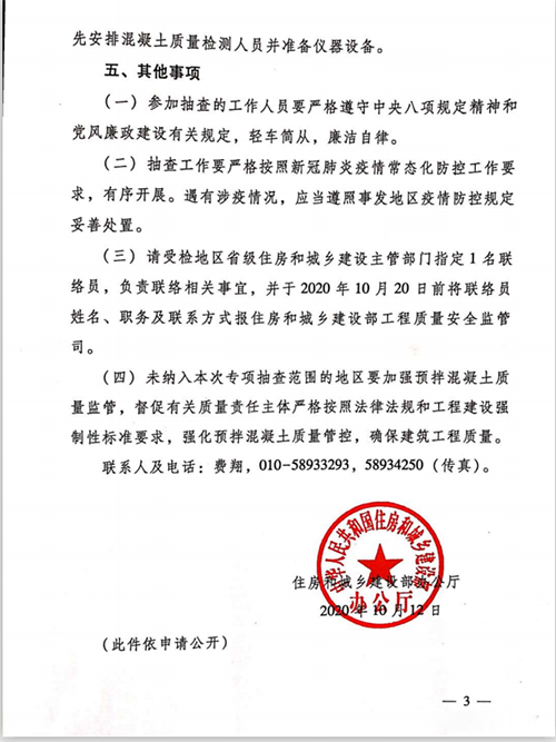 (二)請受檢地區(qū)省級住房和城鄉(xiāng)建設(shè)主管部門按照通知要求準備本地區(qū)預(yù)拌混凝土質(zhì)量相關(guān)書面材料。