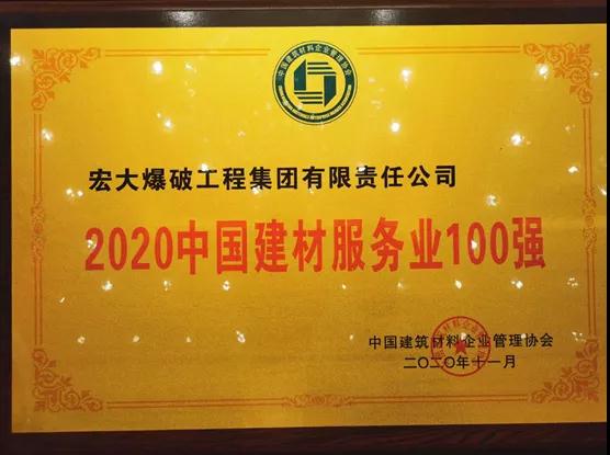 會上發布了“ 2020 中國建材企業 500 強”、“建材服務業 100 強”、“民營建材企業 100 強”、“最具成長性建材企業 100 強”、“建材園區 100 強”、“和諧建材企業”以及“ 2020中國建材工匠”名單。中國砂石協會副會長單位宏大爆破工程集團(以下簡稱宏大爆破)成功躋身“2020中國建材服務業100強”榜單。