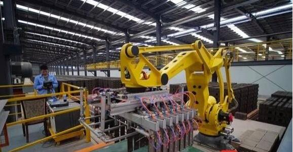 在制磚廠房能看到,從原料破碎到燒制成磚均實現自動化流程,工業機器人成了“搬磚工”。現有的制磚生產線每年能消耗工業固廢和工程渣土100萬噸。拆建垃圾廠房完全投產后,還可再消化拆建垃圾120萬-150萬噸,資源化利用率超過95%。再生產品可以用于鋪路,也可以制成行道磚、盲道磚、透水磚等,真正讓建筑垃圾“吃干榨凈”。