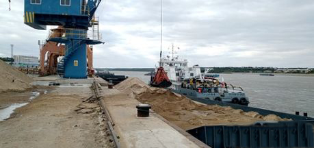 2019年9月18日,黑河港所屬外貿(mào)公司采購的約2600噸江砂,由俄羅斯阿穆拉索港2艘1300噸級駁船運(yùn)抵黑河港。