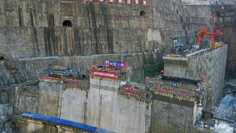 截至目前,白鶴灘水電站主壩已累計澆筑混凝土757.67萬立方米,約占澆筑總量的94%,壩體整體升高258.4米,預計2021年5月將實現大壩全線封頂。