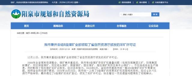 12月11日,陽泉市兼并重組8座煤礦全部領(lǐng)取了省自然資源廳頒發(fā)的采礦許可證。2009年山西省煤炭資源整合、煤礦兼并重組后,陽泉市有8座煤礦存在礦權(quán)重疊問題(包括陽煤集團(tuán)三礦、陽煤集團(tuán)新景..