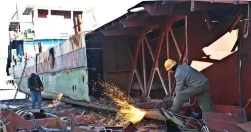 在公安縣楊家廠鎮,一艘由運輸船舶改裝的采砂工程船長58米、寬10.57米,載重685噸,該船舶屬于“三無”船舶,縣水利湖泊局聯合多部門對這艘“三無”船舶進行拆卸。