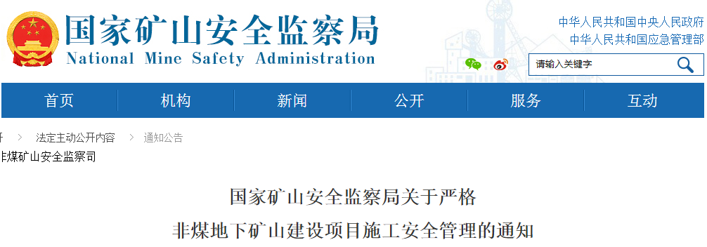 為認真貫徹落實中央領導同志重要指示批示精神,深刻吸取山東煙臺棲霞市笏山金礦“1·10”爆炸事故及近年來非煤地下礦山建設項目(以下簡稱建設項目)施工過程中事故教訓,有效遏制施工期間重特大事故發(fā)生,現(xiàn)就非煤地下礦山企業(yè)嚴格建設項目施工安全管理提出如下要求: