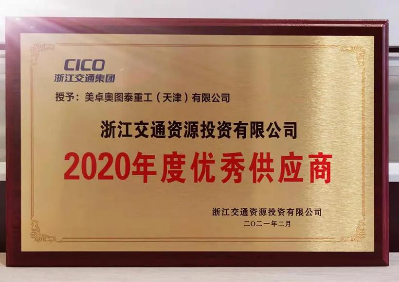 2021年2月,美卓奧圖泰榮獲了浙江交通資源投資有限公司(以下簡稱“交通資源公司”)授予的“2020年度優秀供應商”稱號。