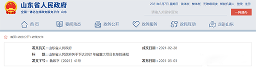 近日,山東省人民政府網站公布2021年省重大項目名單,其中重大實施類項目373個,重大儲備類項目127個。