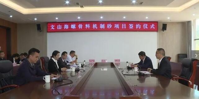 近日,云南省文山州硯山縣人民政府與安徽海螺水泥股份有限公司在民族文化體育中心簽訂海螺骨料機制砂項目協議。
