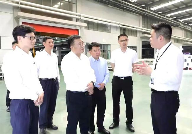 圖為章周中一行在國茂減速機集團生產車間考察