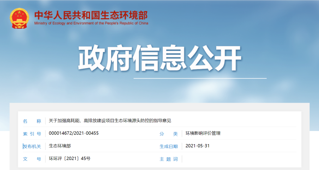 關(guān)于加強(qiáng)高耗能、高排放建設(shè)項(xiàng)目生態(tài)環(huán)境源頭防控的指導(dǎo)意見(jiàn)