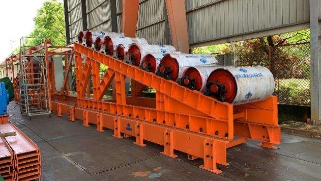 國內(nèi)首套煤礦長距離主斜井TBM施工用連續(xù)帶式輸送機——陜西延長石油可可蓋煤礦主井TBM用連續(xù)帶式輸送機主要設(shè)備完成廠內(nèi)組裝,日前通過客戶驗收。