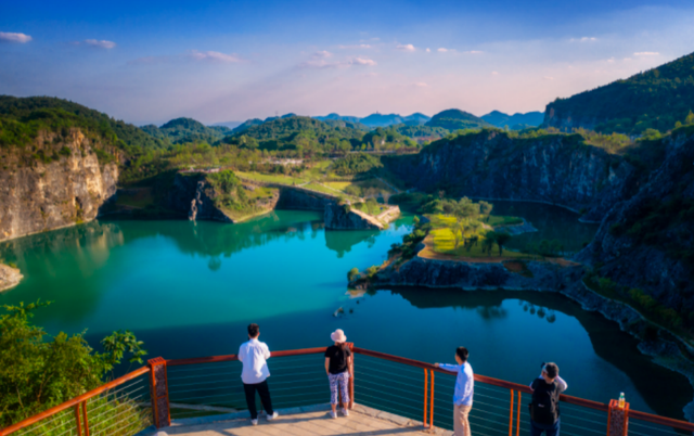礦山公園內(nèi)擁有風貌獨特的礦坑遺跡景觀41處,其中12個有水礦坑更是形態(tài)各異、絕壁環(huán)繞,宛如鑲嵌在銅鑼山脈的一串珍珠。這當中的6個礦坑經(jīng)重點打造,現(xiàn)已面向游人開放。