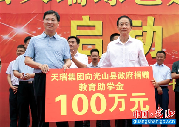 儀式上,天瑞集團光山水泥有限公司總經理段占偉介紹了天瑞綠色建材產業(yè)園項目情況。丁基峰、李玄闊分別作了致辭講話。李留法代表天瑞集團向光山縣捐贈教育助學金100萬元,光山縣領導汪葵代表光山縣接受捐贈。