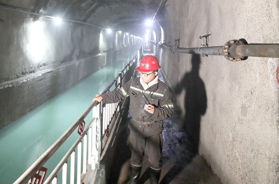 礦井水處理實現(xiàn)全流程綠色循環(huán)。2016年11月,同忻礦投資4115萬元,礦井水深度處理廠建成運行,處理廠分為預(yù)處理系統(tǒng)、深度處理系統(tǒng)、煤泥處理系統(tǒng)三部分。預(yù)處理系統(tǒng)設(shè)計處理能力為18000m /d,深度處理系統(tǒng)設(shè)計處理能力為10000m /d,采用混凝沉淀、錳砂、超濾、反滲透、消毒等處理工藝,委托專業(yè)服務(wù)公司進(jìn)行運營管理,處理后的中水全部回用于井下輔助用水、洗煤廠生產(chǎn)補充水、塔山電廠一期用水,處理后的純凈水全部回用于井下綜采,廢水全部循環(huán)利用不外排,同時將煤泥通過壓煤泥機壓成泥餅后混煤外銷。