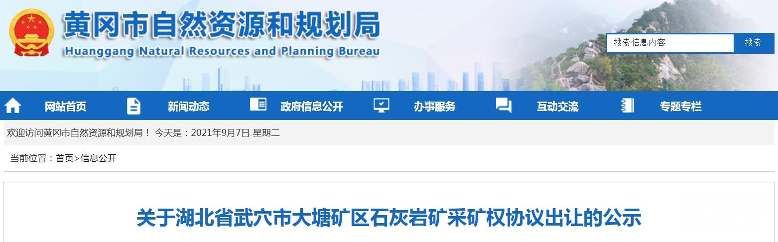 根據湖北省黃岡市自然資源和規劃局發布的關于湖北省武穴市大塘礦區石灰巖礦采礦權協議出讓的公示顯示,經黃岡市自然資源和規劃局2021年8月27日召開的專題會議研究決定,按協議出讓方式將湖北省武穴市大塘礦區石灰巖礦采礦權(新增資源量)出讓給華新水泥(武穴)有限公司。湖北省武穴市大塘礦區石灰巖礦礦區新增資源量26482.78萬噸,水泥用石灰巖采礦權協議出讓收益為39459.34萬元。