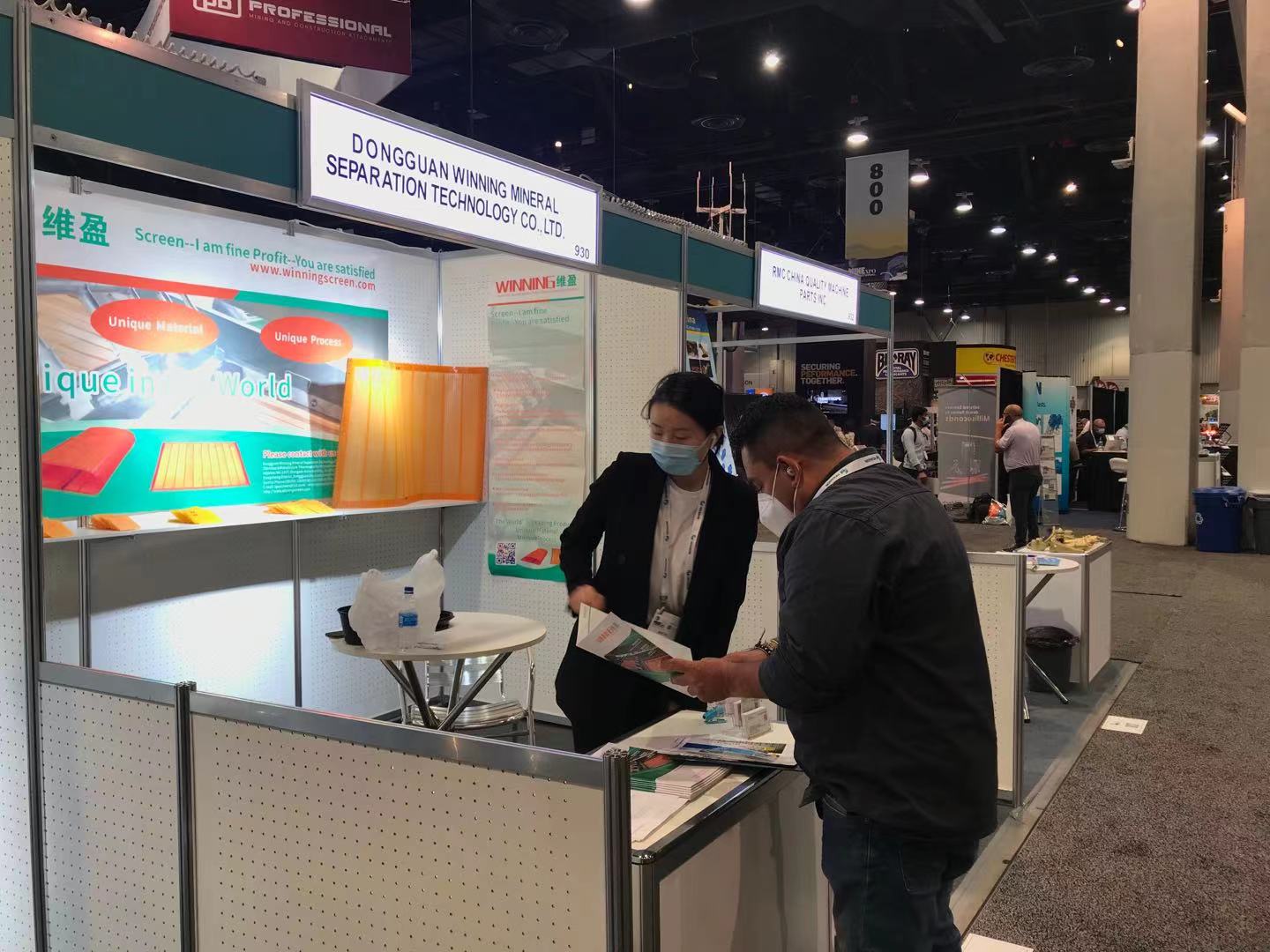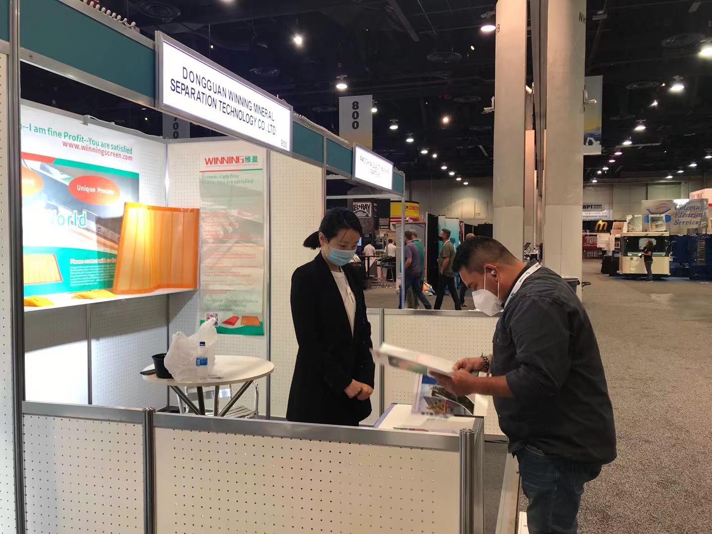 因?yàn)槿蛞咔橛绊?,原?020年8月舉辦的拉斯維加斯礦業(yè)展,延遲至2021年9月舉行。東莞維盈選礦設(shè)備科技有限公司積極響應(yīng)全球碳中和政策號(hào)召,努力克服疫情影響,攜新型環(huán)保微縫篩網(wǎng)-熱塑性聚氨酯彈性體(TPU)微縫篩網(wǎng)如約參加本屆全球最大的礦業(yè)貿(mào)易展。