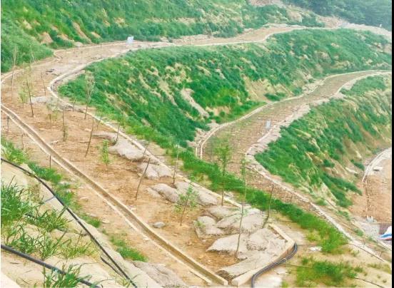 遠(yuǎn)遠(yuǎn)望去,礦山臺(tái)階上樹木蔥蘢。如何引水上山?“這是礦山修復(fù)中的另一大難題。”陳德軍說(shuō),他們?cè)谏缴闲藿藥讉€(gè)蓄水池,從山下抽水上山,光水管就鋪了80多公里;采用噴淋澆灌方式,確保樹苗和滿山草籽成活。