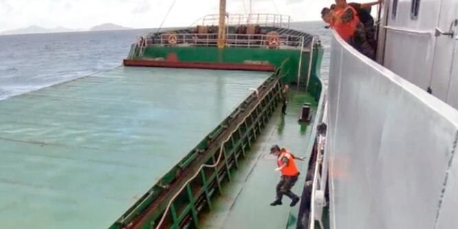 當日13時許,福州海警局執法艇在洋嶼附近海域巡邏時,發現1艘鋼制砂船吃水較深。該船用鋼板遮蓋船艙運輸的貨物,甲板上有明顯海砂痕跡,且在看到海警執法艇后企圖改變航線行駛,十分可疑。海警執法員立即拉響警笛,并通過廣播喊話要求該船停船接受檢查。該船不但不停,還企圖加速逃竄。海警執法員當機立斷,頂著風浪強行靠幫跳幫,成功控制該船。經查,該船載有海砂約7000噸,且人員均無法提供相關手續,涉嫌非法盜采運輸海砂,海警執法員依法對涉案人員及船舶進行扣押。目前,該起案件正在進一步偵辦中。