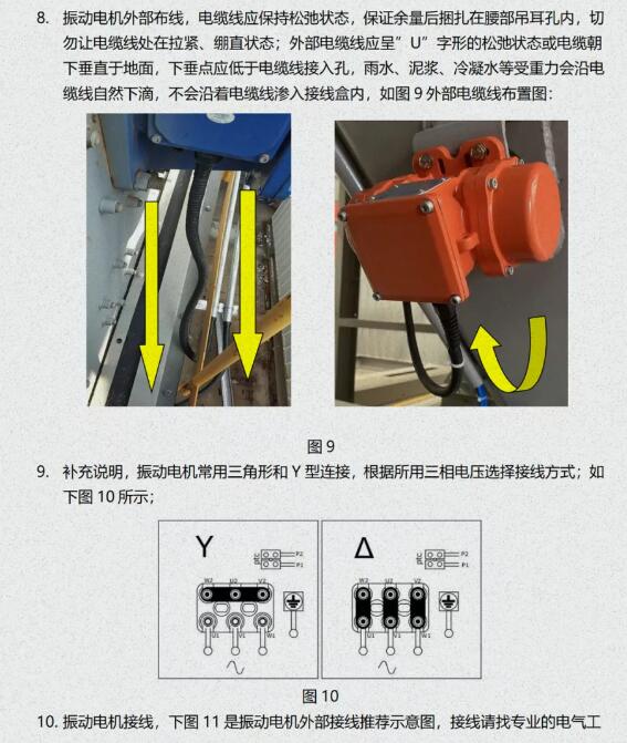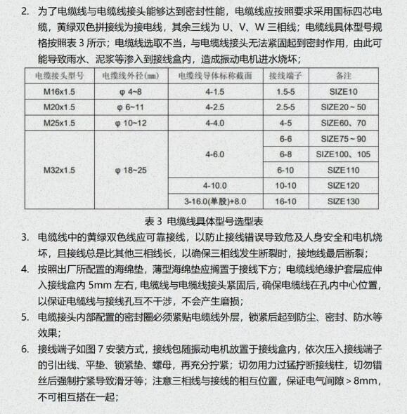 1、振動電機的出線電纜承受振動,所以要選用彈性較大的電纜作電機引線,一般電機引線在電機出線根部容易振斷或磨破損傷,當出現此類故障時要打開電機,從電機內部重新接線。