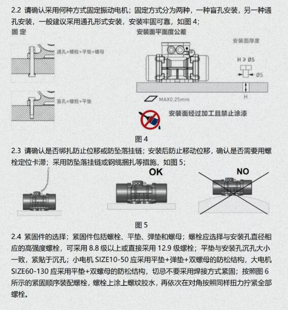 振動電機對設備具有一定的破壞性,同時振動電機也是易損設備,使用不正確時不僅電機本身壽命縮短,對所拖動的機械設備也造成極大的破壞,所以在使用振動電機時一定要嚴格按照振動電機的使用說明進行使用,增加巡檢次數及力度,發現事故隱患后及時處理,萬萬不能帶病維持運行。很多振動電機用戶在第一次安裝時總是遇到不少問題,主要是安裝時的細節沒有把握好,就這些問題我們總結了一下振動電機安裝時應注意的問題。