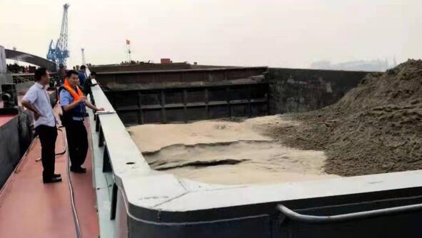 2020年6月初,鎮江分局泰州派出所民警在工作中獲悉轄區某水上過駁區近期有很多浮吊違反規定夜間作業,有的甚至通宵作業。經過走訪調查,民警鎖定部分浮吊,并于6月20日夜開展突擊檢查,現場查獲靠泊浮吊的一艘運砂船裝載1000余噸江砂。