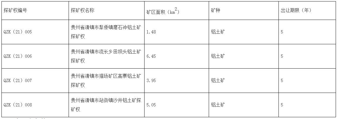貴州省清鎮(zhèn)市犁倭鎮(zhèn)磨石沖鋁土礦等四宗探礦權(quán)掛牌出讓公告