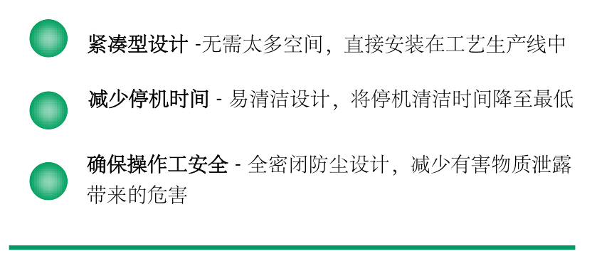 Russell Compact Sieve ®緊湊型直排篩是一種創新的篩分解決方案。作為一種高容量篩分機,能夠篩分各種食品粉末和液體,同時也能整齊地安裝到生產線中。該機器可以提高產品質量,減少生產停機時間,因為該裝置可以快速、輕松地拆卸下來進行清潔。這種檢查篩在食品工業中非常流行,可對粉末和液體進行高度密封和衛生篩分。