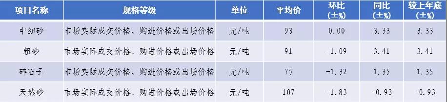 從四川省發(fā)改委了解,12月四川省砂石價格中細(xì)砂93元/噸,粗砂均價91元/噸,碎石子均價75元/噸,天然砂均價107元/噸,砂石價格較11月有整體微降,價格維穩(wěn)。