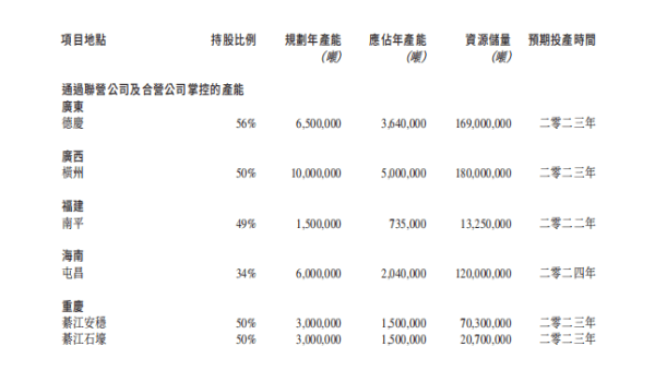 華潤水泥通過聯營公司及合營公司股權權益掌控的骨料產能相關資料