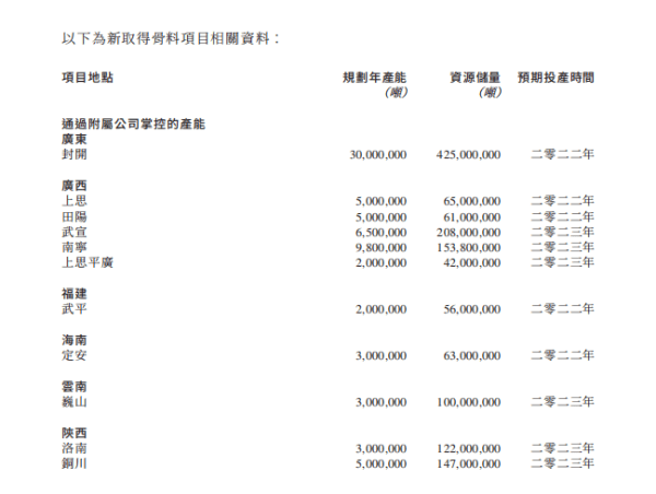 華潤水泥通過附屬公司掌控的骨料產能相關資料