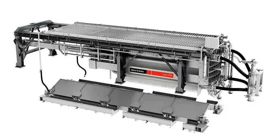 美卓奧圖泰的交付范圍包括Larox®FFP3512壓濾機的工程設計、制造,以及安裝調試咨詢服務與備品備件供應。全自動一次性全開臥式壓濾機(FFP)將隔膜技術和側梁設計的優點與優異的機械和工藝性能相結合,從而實現安全和可持續的高產尾礦脫水,并降低全壽命周期的運營成本。