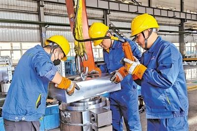 工人在車間組裝工作面智能刮板輸送機