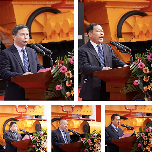 常務(wù)副總裁劉風(fēng)亮宣讀了中國重型機(jī)械工業(yè)協(xié)會、中國冶金礦山企業(yè)協(xié)會、中國非金屬礦工業(yè)協(xié)會和中國稀土學(xué)會等上級主管協(xié)會發(fā)來的賀信,賀信中紛紛表示全球最大立環(huán)高梯度磁選機(jī)的下線不僅是華特磁電科技創(chuàng)新的重要里程碑,更是代表了我國乃至國際高端磁電選礦裝備技術(shù)實現(xiàn)了重大突破。