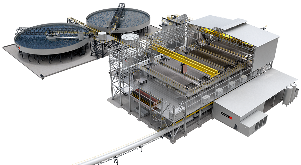 濃密車間設備基于美卓奧圖泰IPS斜板沉降槽、HRT高效濃密機、HCT高壓縮濃密機和PT膏體濃密機技術。Reactorwell™和 Vane Feedwell™給料井系統強化了進料礦漿的混合、稀釋和停留時間,從而可實現絮凝劑吸附和絮團生長的最大化。