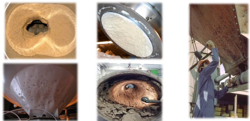 由于粉體的特性,他們容易附著在料斗、簡倉、斜槽、管道、罐體等容器的內壁上。任何細微變動如下料口開啟、表面粗糙、彎曲彎角、容器或者物料的形狀都可能會減緩物料的流動,從而造成浪費。
