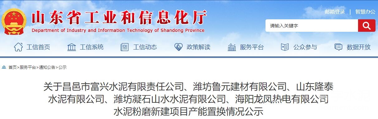 最新消息,根據山東省工業和信息化廳公示的內容顯示,昌邑市富興水泥有限責任公司擬新建一臺φ3.8*13m磨機,年產能90萬噸;濰坊魯元建材有限公司擬新建一臺φ3.8*13m磨機,年產能100萬噸;山東隆泰水泥有限公司擬新建一臺φ3.8*13m磨機,年產能100萬噸;濰坊凝石山水水泥有限公司擬新建一臺φ3.8*13m磨機,年產能90萬噸;海陽龍鳳熱電有限公司擬新建一臺3.8*13m磨機,年產能100萬噸。公示內容如下: