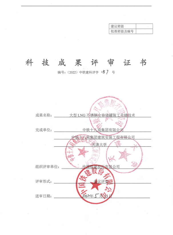 近日,由中鐵十八局集團(tuán)牽頭,建安公司負(fù)責(zé)研發(fā)的“大型LNG不銹鋼全容儲罐施工關(guān)鍵技術(shù)”“隧道廢棄玄武巖制備機(jī)制砂及其在混凝土中的應(yīng)用關(guān)鍵技術(shù)”兩項(xiàng)科技成果在中國鐵建(601186)股份公司2022年度科學(xué)科技成果評審會議上分別被評定為“國際領(lǐng)先水平”和“國際先進(jìn)水平”。
