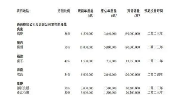圖片華潤水泥通過聯營公司及合營公司股權權益掌控的骨料產能相關資料