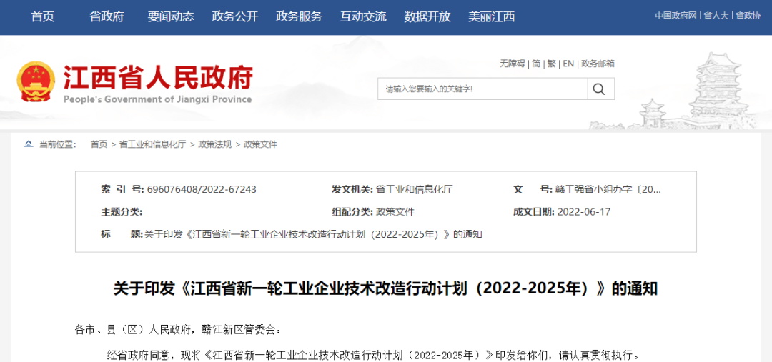 江西省新一輪工業(yè)企業(yè)技術(shù)改造行動計劃(2022-2025年)