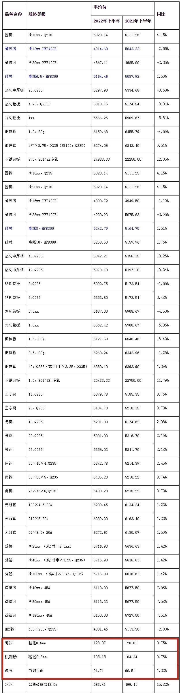 一、上半年砂石、水泥、鋼材價格走勢情況