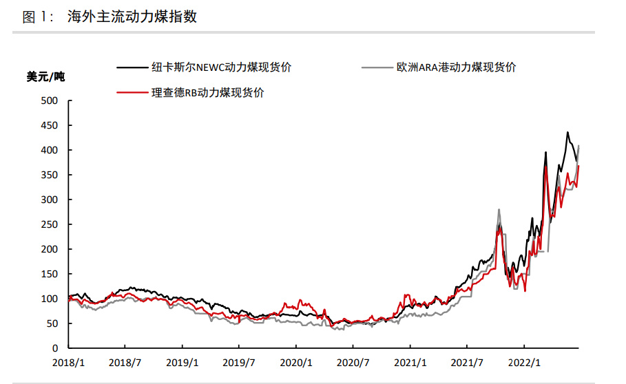 截至2022年7月29日,歐洲ARA港動(dòng)力煤現(xiàn)貨價(jià)/澳洲紐卡斯?fàn)杽?dòng)力煤現(xiàn)貨價(jià)分別為362美元/噸和421美元/噸,相比年初分別上漲142%和141%。