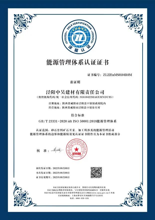 喜訊!陜煤新材集團涇陽公司獲能源管理體系認證證書