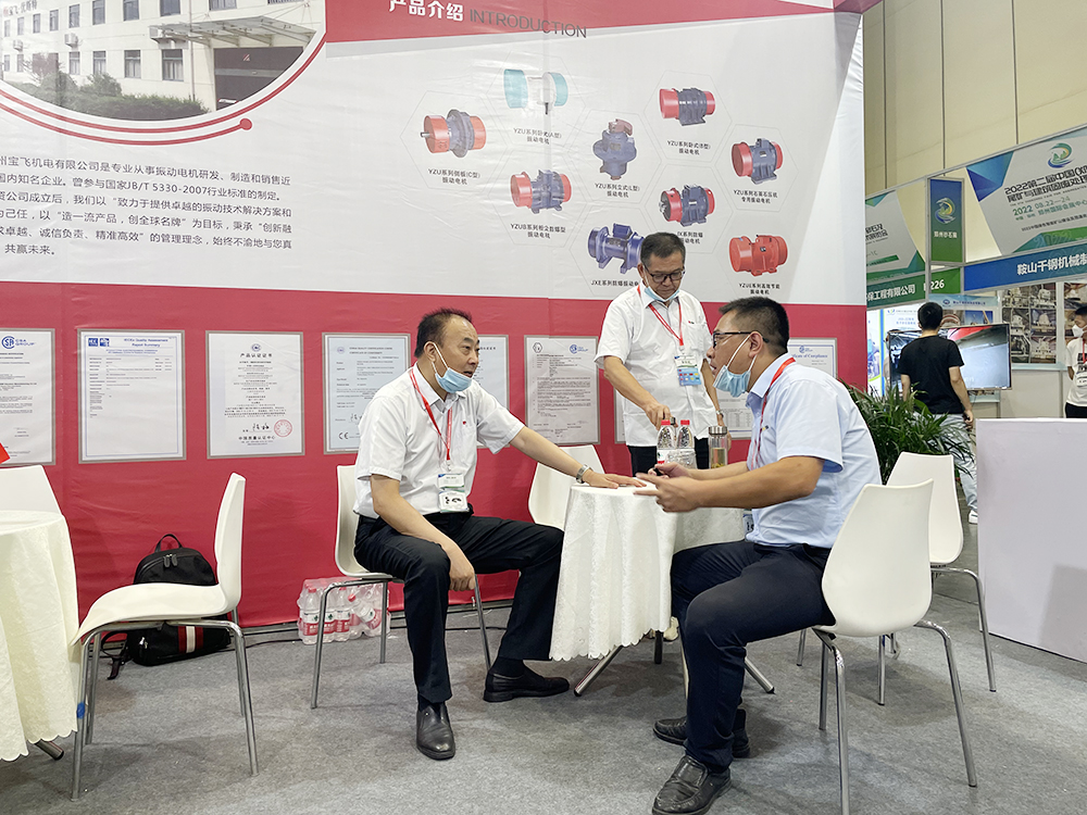 “綠色智能、合作共贏”——8月22日~24日,2022第二屆中國(鄭州)砂石及尾礦與建筑固廢處理技術(shù)展覽會暨 2022中國綠色智能礦山建設及固廢處理與礦山修復高峰論壇在鄭州國際會展中心圓滿舉辦! 揚州寶飛優(yōu)斯特振動器制造有限公司攜振動電機等產(chǎn)品亮相,現(xiàn)場收獲滿滿!