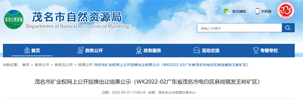 日前,從茂名市公共資源交易中心獲悉,湖州久元工程管理公司以4.11億競得廣東茂名保有資源儲量超4700萬方建筑用花崗巖采礦權。