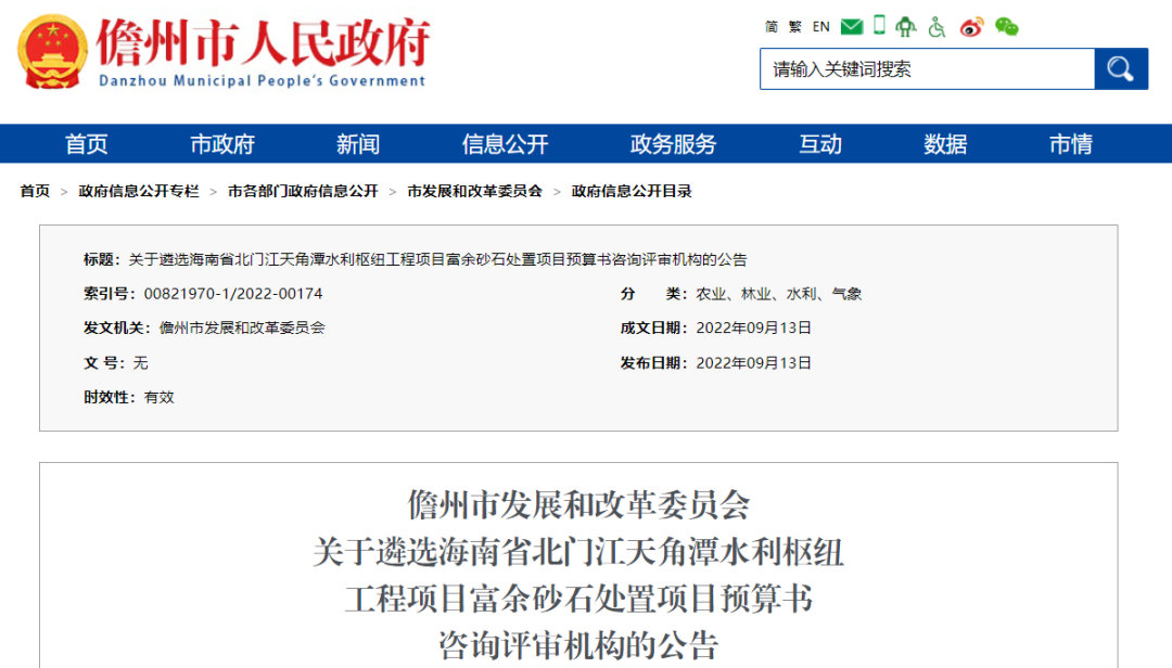 根據(jù)市政府工作安排,我委擬公開(kāi)遴選1家咨詢(xún)?cè)u(píng)審機(jī)構(gòu)承擔(dān)海南省北門(mén)江天角潭水利樞紐工程項(xiàng)目富余砂石處置項(xiàng)目預(yù)算書(shū)咨詢(xún)?cè)u(píng)審任務(wù)。現(xiàn)將有關(guān)事項(xiàng)公告如下: