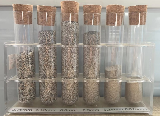再生骨料生產采用工程研究院自主研發的“零排放機制砂生產技術”,用廢棄混凝土試塊為原材料,粗破后制砂,生產的再生砂粒形圓潤,級配優良,充分保障了再生骨料混凝土的工作性和力學性能。