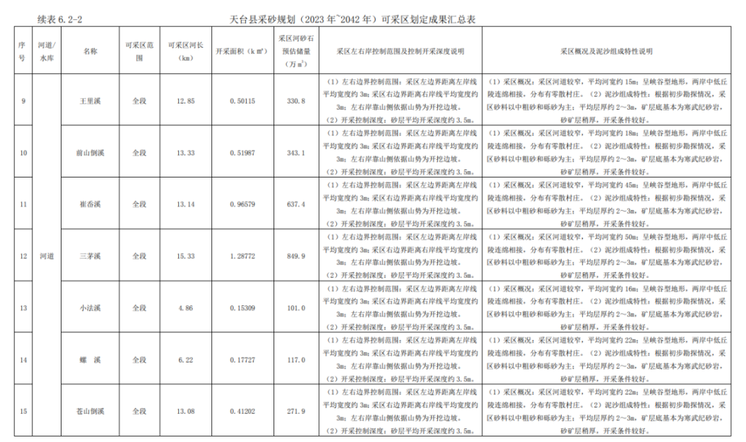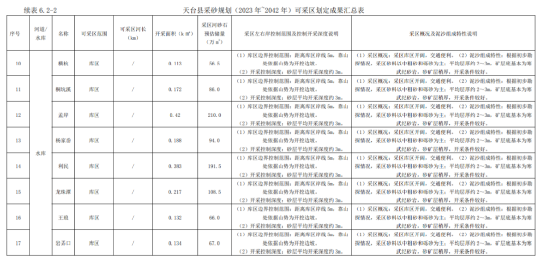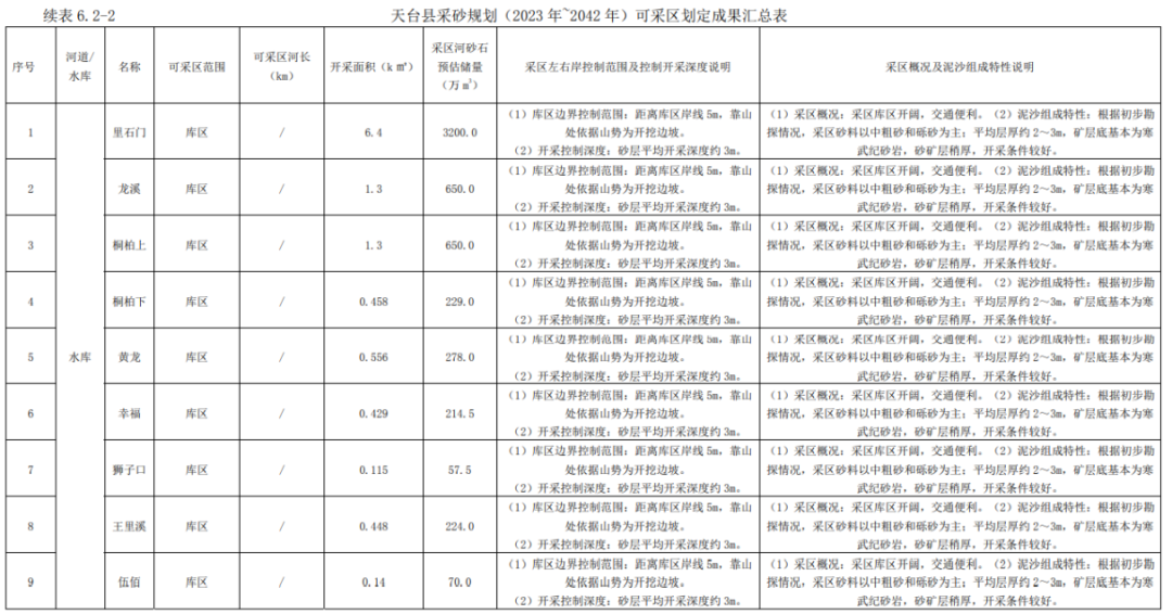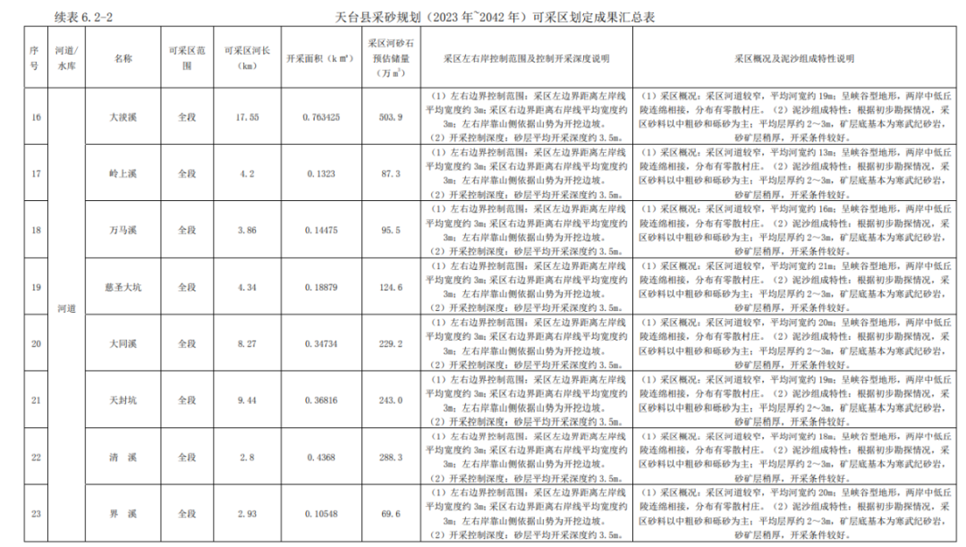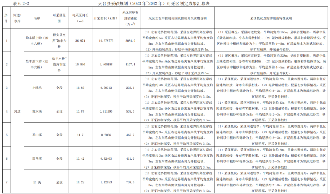 據獲悉,浙江省天臺縣水利局發布關于《天臺縣采砂規劃(2023-2042)》。本次規劃劃定的可采區39個,其中河道22條,累計可采區長度約265.25km,水庫17座,開采面積38.38k㎡,符合可采區規劃原則;規劃期內可采區可采砂總量約為25767.3萬m?,約為4億噸。分二十年期實施 (2023年~2042年)。