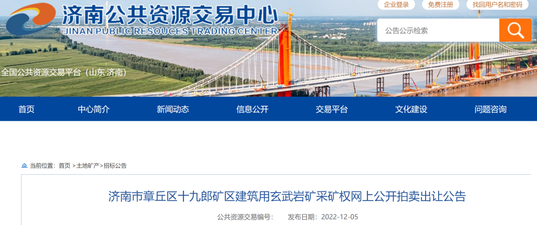 二、網(wǎng)上交易平臺(tái):濟(jì)南公共資源交易中心電子交易系統(tǒng)三、出讓采礦權(quán)簡(jiǎn)要情況