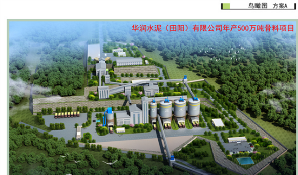據了解,華潤水泥(田陽)項目位于廣西百色市田陽那坡鎮,總投資3.96億元,采用“錘破+回料破+兩段篩分+制砂樓”工藝進行骨料及制砂生產,設計年產500萬噸,包括熔劑石100萬噸、精品骨料200萬噸、機制砂150萬噸、細石粉25萬噸、泥粉料25萬噸。