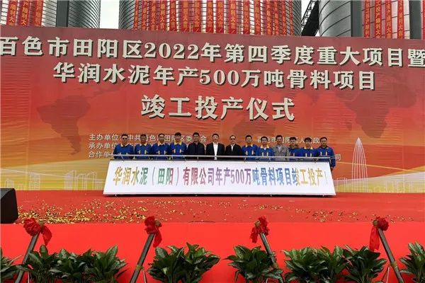 據消息,華潤水泥田陽年產500萬噸砂石骨料生產線今天正式竣工投產,從2022年6月21日正式入場至項目投產共用時165天,創造了華潤水泥骨料項目建設新速度!華潤水泥西南大區總經理彭方清、副總經理王云、楊彥博等領導以及當地主管部門領導出席投產儀式。